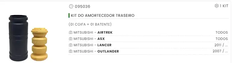 KIT BATENTE COIFA TR OUTLANDER/ASX/LANCER/AIRTREK